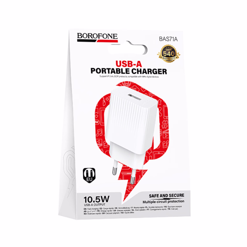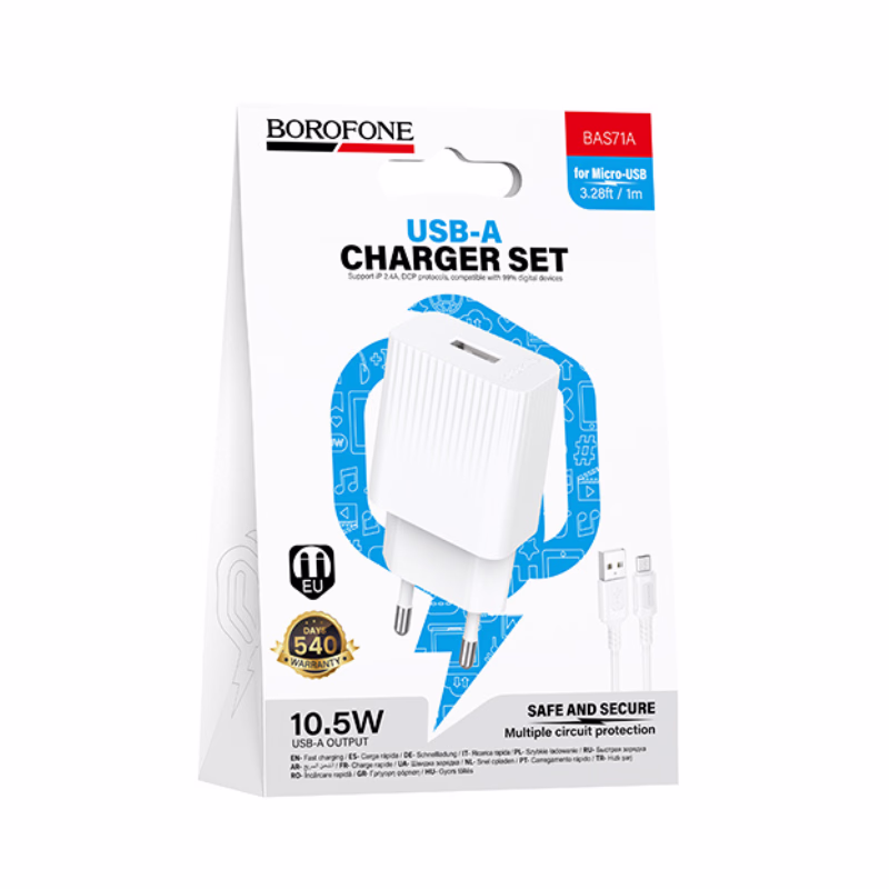 Le BOROFONE BAS71A se distingue par sa prise au format européen, garantissant une insertion parfaite et sécurisée dans toutes vos installations électriques en Algérie. Sa structure en ABS de haute qualité assure une isolation thermique supérieure et une durabilité exemplaire, valorisant un investissement pérenne pour chaque utilisateur dz. Délivrant une sortie stable de 5 V / 2,1 A, il offre une recharge fluide et constante pour vos smartphones et tablettes. Ce pack complet, incluant un câble Micro-USB robuste, assure une compatibilité immédiate avec une vaste gamme d'équipements. Avec un poids plume de 32 g et des dimensions compactes, il se transporte facilement, offrant une solution de charge certifiée qui résiste aux manipulations quotidiennes tout en protégeant les circuits internes de vos précieux appareils.