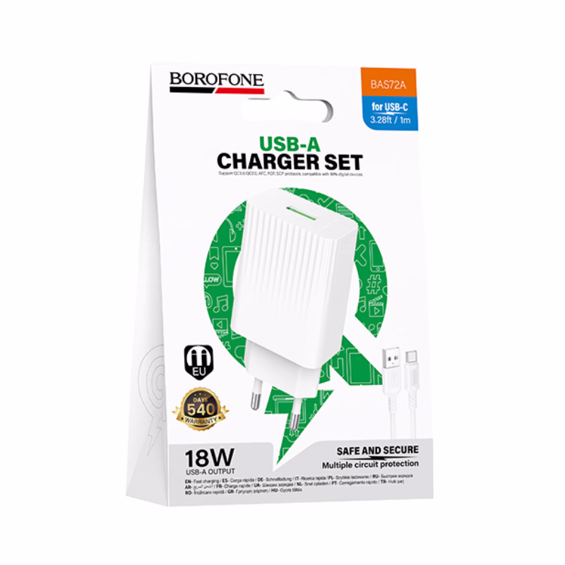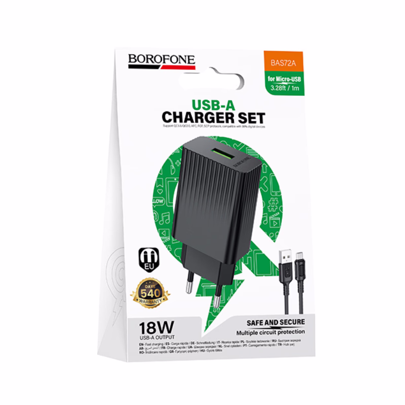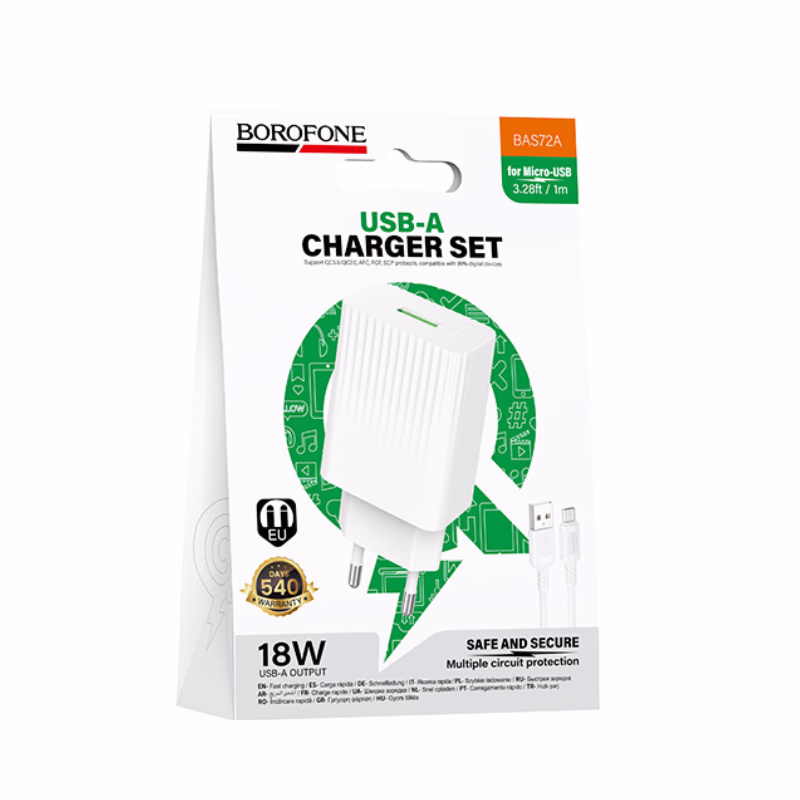 Le BOROFONE BAS72A se distingue par sa puissance de 18 W, propulsée par la technologie Quick Charge 3.0, garantissant une recharge sécurisée et ultra-rapide pour vos appareils. Sa compatibilité avec les protocoles FCP et AFC en fait un allié universel, capable de s'adapter aux exigences des plus grandes marques de smartphones. Fabriqué en ABS haute densité, il offre une robustesse remarquable et une protection thermique supérieure, valorisant une durabilité exemplaire pour chaque utilisateur dz. Ce pack complet, accompagné de câbles Micro-USB et Type-C de haute qualité, assure une ergonomie parfaite et une flexibilité d'usage immédiate. Sa prise européenne certifiée garantit une stabilité électrique irréprochable, offrant aux foyers en Algérie une solution de charge robuste qui protège l'intégrité de vos batteries sur le long terme.