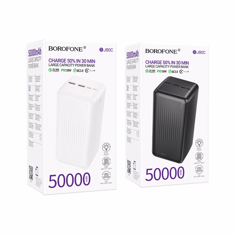 Le BOROFONE BJ80C se distingue par son ingénierie de pointe, offrant une sortie USB-A de 22,5 W et une sortie USB-C Power Delivery de 20 W. Cette combinaison permet de charger vos appareils avec une vitesse fulgurante, respectant les protocoles les plus avancés tels que QC, FCP et SCP. Fabriquée à partir d'un mélange de matériaux ABS et PC haute densité, sa structure est conçue pour résister aux conditions les plus exigeantes rencontrées en Algérie. Ses cellules en lithium-polymère de haute qualité assurent une stabilité thermique exemplaire et une durabilité certifiée. Malgré son poids imposant de 965 g, témoin de sa capacité réelle, son design ergonomique facilite son transport dans un sac à dos. Pour l'utilisateur dz exigeant, cet outil valorise une efficacité multi-appareils grâce à ses ports de sortie multiples et son indicateur LED précis qui affiche l'état de votre réserve d'énergie à chaque instant.