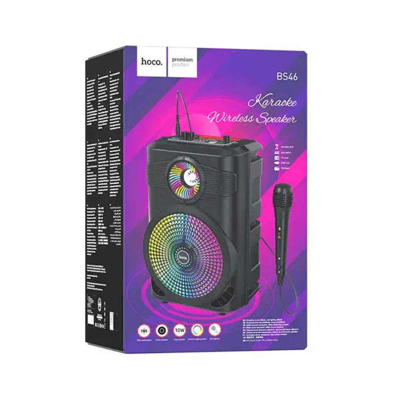 DDoté d’un haut-parleur de 8 pouces délivrant une puissance de 10 W, le HOCO BS46 offre des basses dynamiques et des voix nettes, idéales pour animer vos espaces extérieurs. Sa technologie Bluetooth 5.0, associée à la puce Blue Trum AB5362B, assure une connexion stable et rapide avec vos appareils. Il prend en charge plusieurs modes : Bluetooth, FM, USB, carte TF, AUX et TWS, vous offrant une liberté totale d’écoute. Sa batterie de 1800 mAh se recharge en environ 2,5 heures et permet jusqu’à 3 heures d’autonomie musicale à 70 % du volume. Fabriqué en ABS résistant, avec un poids de 1,9 kg et des dimensions équilibrées, il combine solidité, durabilité et performance pour répondre aux besoins des utilisateurs en Algérie.