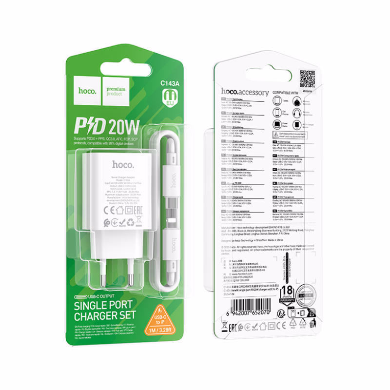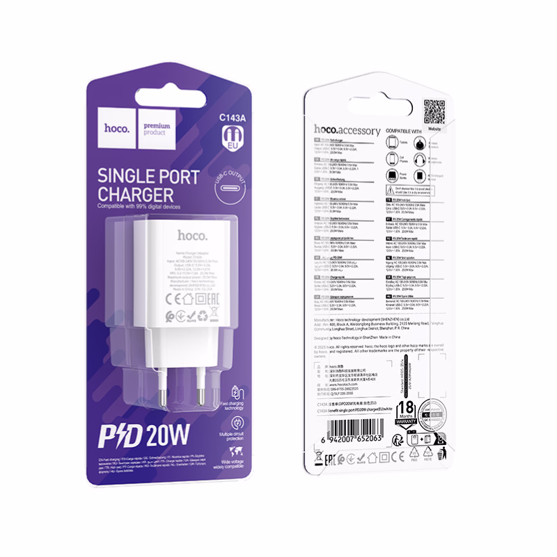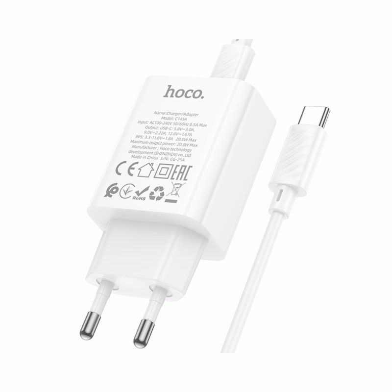 Le HOCO C143A se distingue par sa puissance de 20 W via son port USB-C, supportant les protocoles de charge rapide les plus performants tels que PD, QC, FCP et AFC. Sa structure en ABS de haute qualité offre une résistance exceptionnelle à la chaleur et aux chocs, garantissant une durabilité souveraine pour une utilisation intensive. Grâce à son design ergonomique et son format ultra-léger de seulement 39 grammes, il se glisse facilement dans n'importe quel sac, devenant l'outil indispensable pour vos déplacements professionnels ou vos voyages à travers le pays. La conception aux normes européennes assure une insertion fluide et sécurisée, tandis que sa puce intelligente protège vos appareils contre les surcharges et les courts-circuits. Chaque détail de ce chargeur témoigne d'une qualité de fabrication rigoureuse, offrant une valeur ajoutée incontestable pour prolonger la durée de vie de vos batteries de smartphones et tablettes tout en assurant une alimentation stable et foudroyante en toute circonstance.