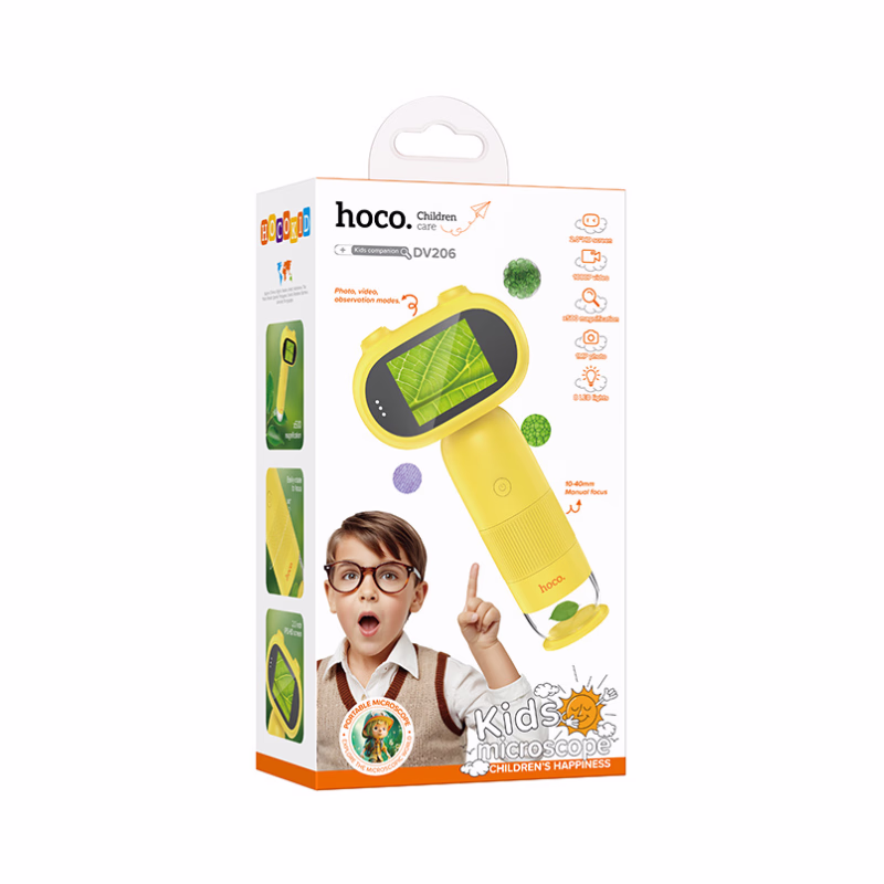 Le HOCO DV206 se distingue par sa qualité d'image saisissante, grâce à un capteur de haute précision et un écran IPS de 2 pouces offrant des couleurs éclatantes. La mise au point manuelle, fluide et précise, permet de capturer des photos de 16 Mpx et des vidéos en 1080p, immortalisant chaque détail microscopique avec une netteté professionnelle. Doté de huit LED intégrées, il illumine les textures les plus fines, révélant la beauté cachée des minéraux ou des végétaux. Sa structure légère en ABS de seulement 65 grammes garantit une ergonomie parfaite pour les petites mains, assurant une durabilité à toute épreuve lors des sorties éducatives. Avec une autonomie généreuse de 3,5 heures et un menu multilingue incluant l'arabe, cet appareil certifie une expérience pédagogique riche, sécurisée et totalement immersive pour les futurs chercheurs.