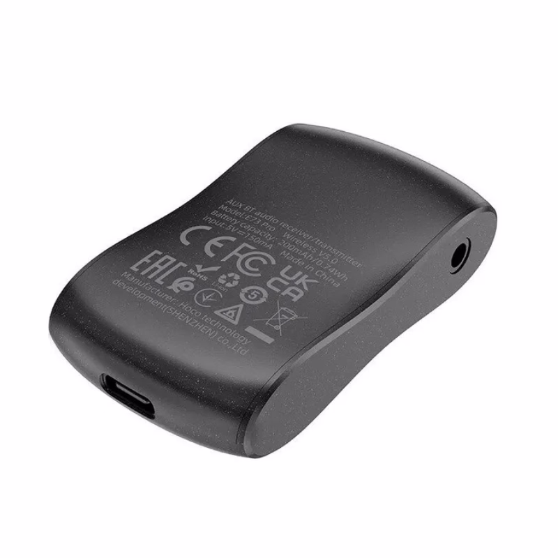 Le Hoco E73 Pro est équipé d’une puce JL AC6956 offrant une qualité audio HD sans aucune distorsion. Sa connexion Bluetooth 5.0 garantit une liaison rapide, stable et fluide, même à distance. Il dispose d’un double mode intelligent : en mode RX (récepteur), il connecte vos appareils filaires à votre smartphone ou tablette, et en mode TX (émetteur), il diffuse sans fil le son de votre téléviseur ou ordinateur vers vos écouteurs Bluetooth. Avec jusqu’à 10 heures d’autonomie en mode RX et 8 heures en mode TX, il vous accompagne toute la journée. Sa batterie intégrée de 250 mAh se recharge en seulement 2 heures, et son format mini (34 × 59 × 13 mm, 23 g) en fait un compagnon discret et élégant. Sa prise jack 3,5 mm universelle lui permet de s’adapter à tous vos appareils audio, pour une expérience sans fil fluide et immersive.