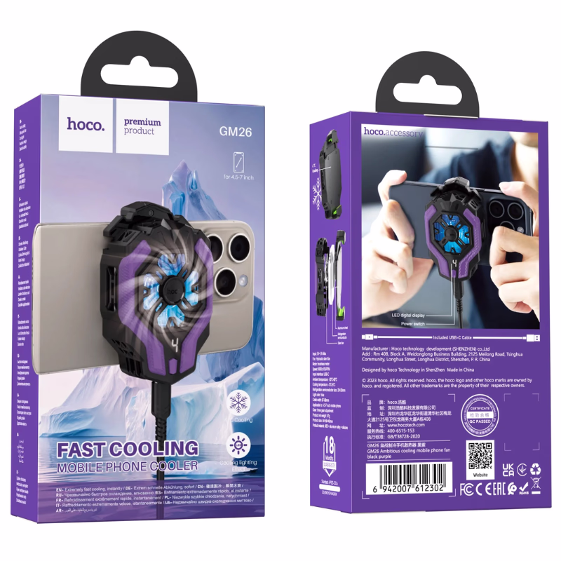 HOCO GM26 – Ventilateur de téléphone portable Ambitieux refroidissement black purple
