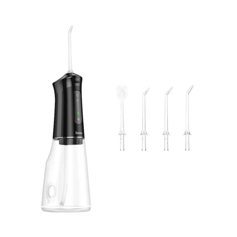 HOCO HP61 redéfinit les standards de l’hygiène bucco-dentaire à domicile, avec son design noir sobre et raffiné, il combine la puissance, l'ergonomie et la technologie moderne. Sa structure en ABS de haute qualité assure robustesse et durabilité, tandis que ses 5 embouts interchangeables offrent une expérience sur mesure, adaptée à chaque besoin, nettoyage interdentaire, gencives sensibles, porteurs d’appareils ou soins approfondis.