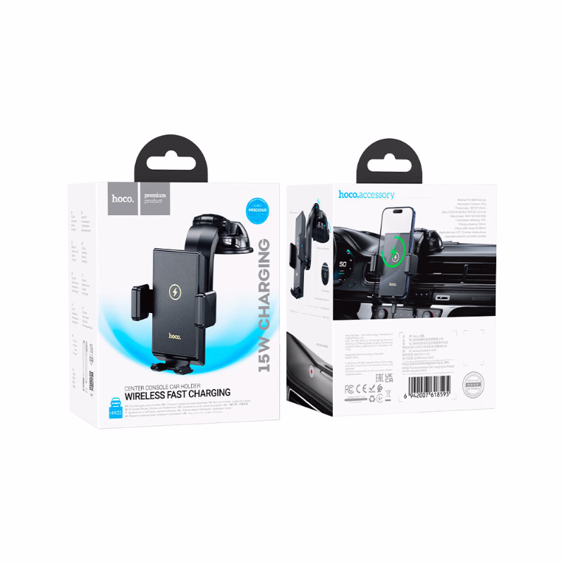 HOCO HW 22 – Support de voiture à chargement rapide sans fil Precious (console centrale)