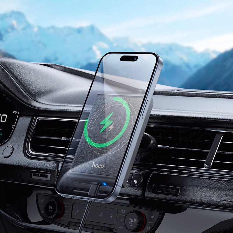 HOCO HW19 – Support de voiture magnétique sans fil à chargement rapide Precious (sortie d’air)