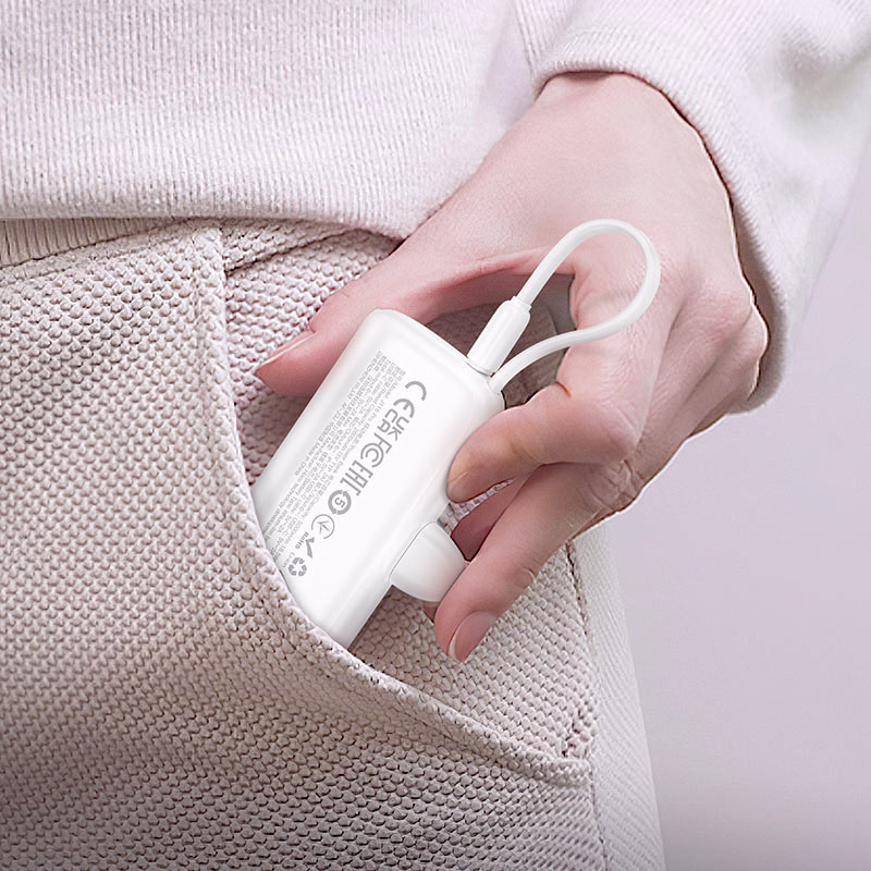 HOCO J116 PRO – Batterie externe de poche avec câble (5000 mAh) white