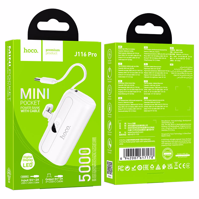 La batterie externe Hoco J116 Pro 5000 mAh redéfinit la praticité pour les utilisateurs modernes en Algérie. Fine, légère et élégante, elle s’impose comme l’alliée parfaite pour garder vos appareils chargés à tout moment. Grâce à son design compact et son câble intégré, plus besoin de transporter plusieurs accessoires : tout est déjà prêt pour une recharge instantanée. Pensée pour les utilisateurs dz en quête d’efficacité et de style, la J116 Pro combine puissance, confort et modernité dans un format de poche.