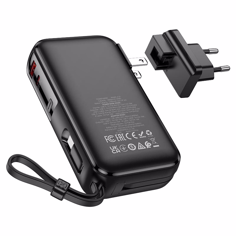 HOCO J131 – Batterie externe Spirit 22,5 W + PD20 W entièrement compatible avec câble (US/EU) (10 000 mAh) black