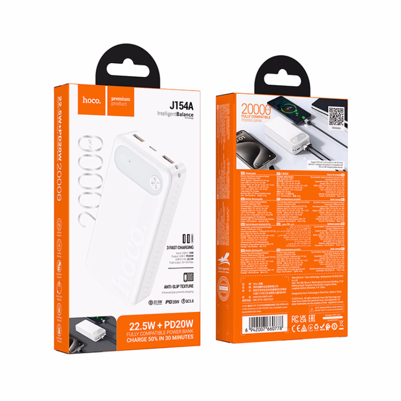 HOCO J154A – Power Bank 20 000 mAh Charge Rapide 22.5W + PD 20W