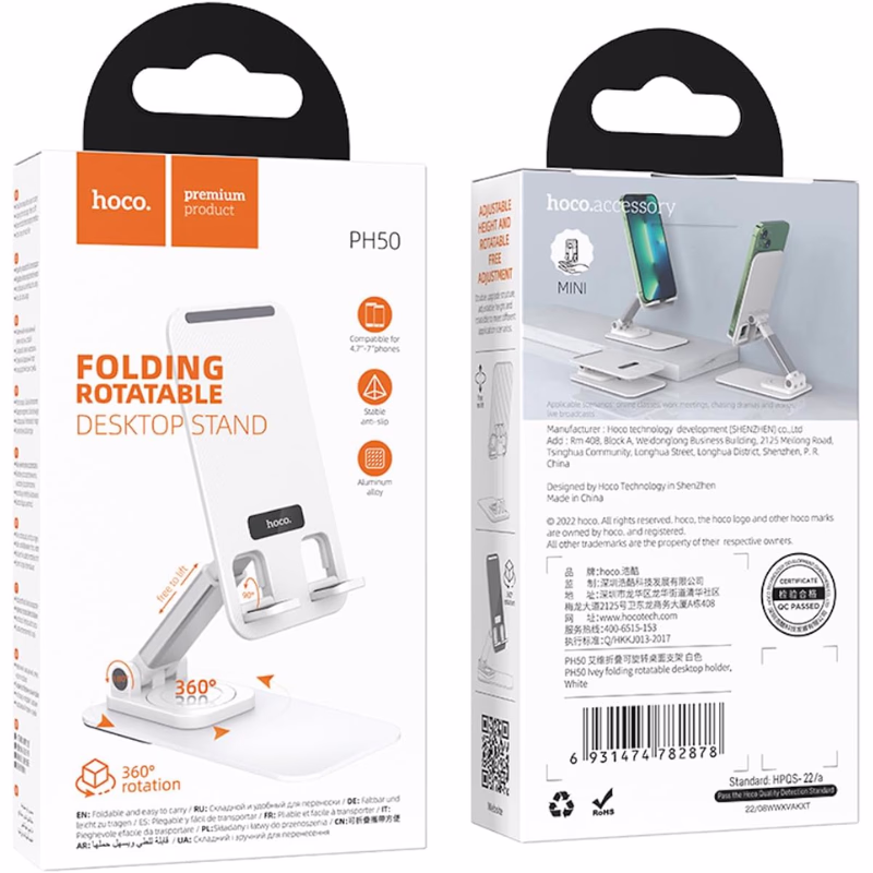 Fabriqué avec des matériaux durables , ABS, alliage d’aluminium et silicone antidérapant , le PH50 garantit une stabilité exceptionnelle même lors d’une utilisation prolongée. Sa conception pliable et rotative à 360° permet de régler la hauteur et l’inclinaison selon vos besoins, pour un confort visuel sans fatigue. Compatible avec tous les smartphones de 4,5 à 7 pouces, il devient un outil polyvalent pour les réunions, les cours en ligne, les diffusions en direct ou le visionnage de films.