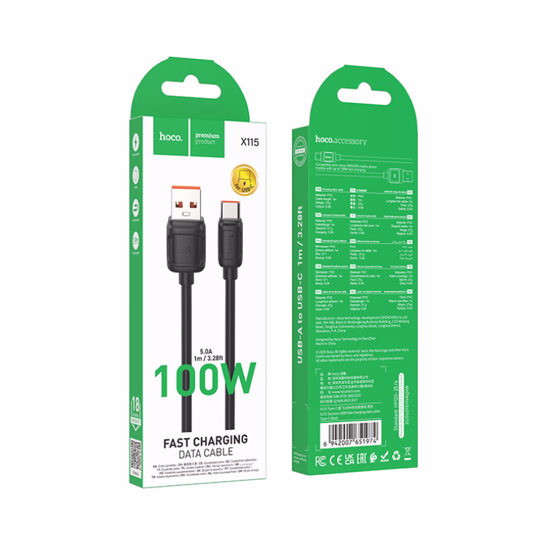 Le HOCO X115 se distingue par sa compatibilité universelle avec les protocoles de charge les plus avancés, incluant OPPO VOOC, Huawei FCP/SCP, Samsung et Xiaomi Mi Turbo Charge. Grâce à son noyau de cuivre haute densité et son isolation en PVC premium, il assure une conductivité optimale sans surchauffe, protégeant ainsi la santé de votre batterie sur le long terme. Sa structure ergonomique, dotée de joints renforcés, résiste aux torsions répétées, offrant une durabilité souveraine face aux rigueurs d'une utilisation intensive. Que vous soyez en déplacement ou au bureau, ce câble de haute volée garantit une synchronisation de données foudroyante et une alimentation stable. Chaque détail, de son poids plume de 27 grammes à sa certification multi-protocoles, témoigne d'un savoir-faire industriel rigoureux pour une qualité qui dure, faisant de cet outil un investissement intelligent pour votre équipement mobile.