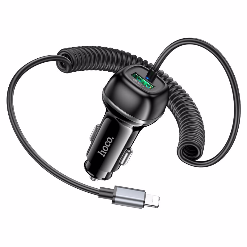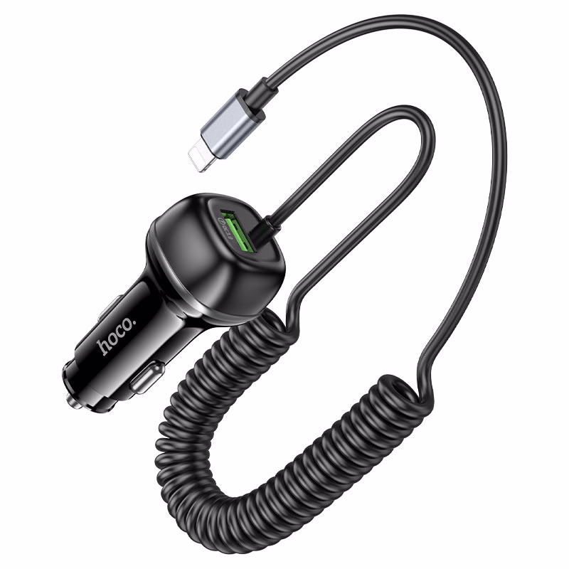 HOCO Z58B Rank – Chargeur de voiture intelligent 48W à charge rapide PD30W + QC3.0 avec câble intégré Lightning